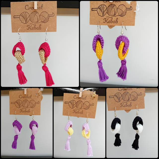 A multicoloured infinity inspired crochet earring, made with sterling silver hypoallergenic earring hooks