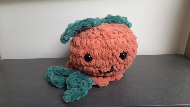 Smiley Orange soft toy crocheted with super soft velvety yarn